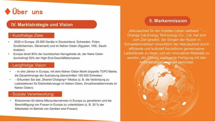 Um den deutschen Markt systematisch zu erschließen, startet Orange Cat Energy Technology GmbH offiziell das Offline-Franchise-Programm für Shared-Powerbank-Lösungen. Als führender Hersteller und Betreiber intelligenter Sharing-Geräte in China möchten wir gemeinsam mit unseren Partnern ein nachhaltiges und bequemes Lade-Netzwerk in Europa aufbauen.
